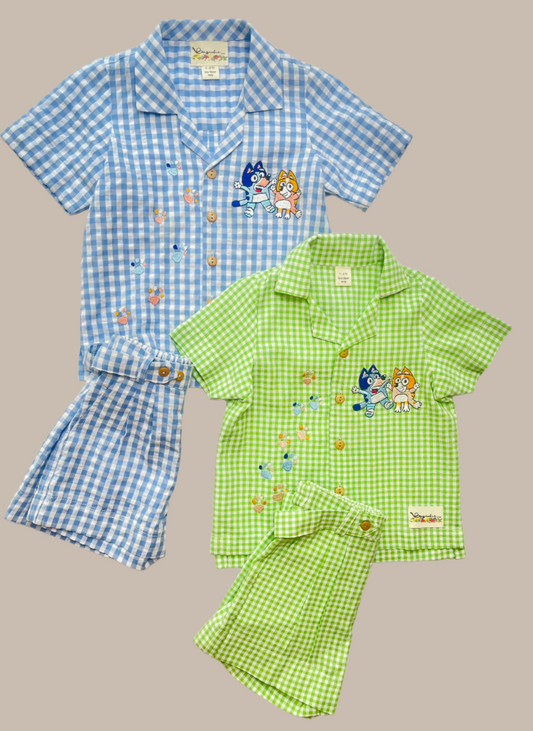Regular price Rs. 3,400Regular priceUnit price perSale price Rs. 3,400GREEN gingham set with Bluey