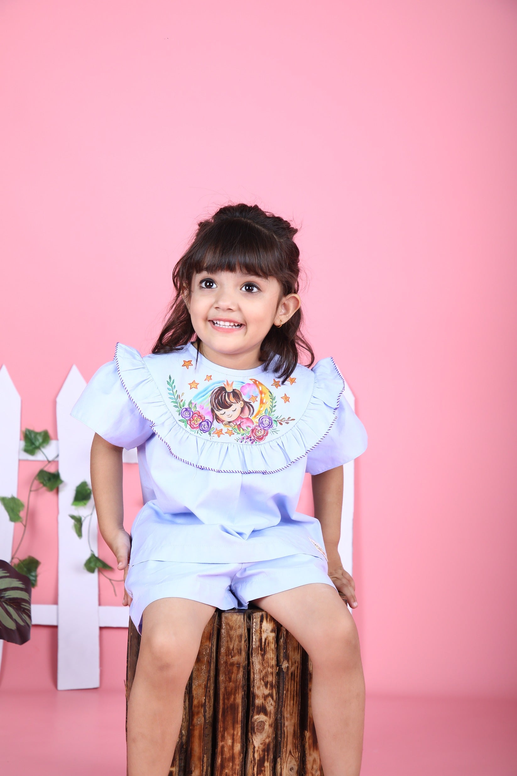 Sleeping beauty... starry night!! This easy, cutest hand painted, and super comfy set is *it* for summer. Easy enough for school, but pretty enough for a fancy outing with mommy. Pair it with sneakers.