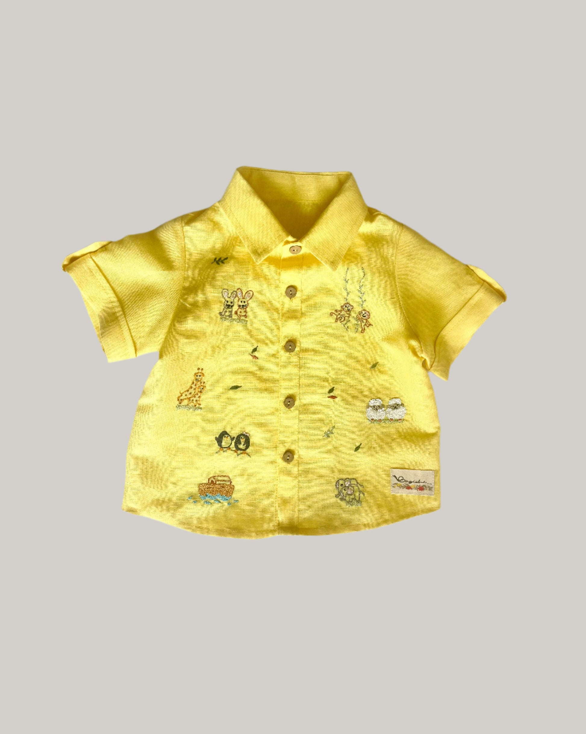 Introduce a splash of color and fave jungle creatures to your little one's wardrobe with our bright linen shirt. Crafted from soft, breathable linen, this shirt is perfect for warm days and active play. The standout feature is the beautifully embroidered jungle animals, adding a wilderness and fun touch to the classic design.
